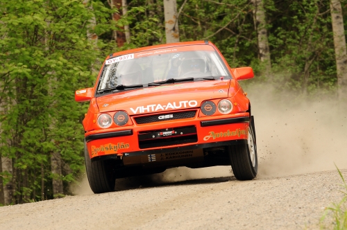 Ykkös-EK:n maalin stopilla toimitsija totesi etttä nyt pojat haisee muutkin kuin jarrut! Syyksi selvisi sylinterikannen tiivisteen pettäminen mutta vettä lisäillen ajelimme varovasti maaliin. Kauan seisseet iskarit eivät pysyneet oikein mukana ja EK 2 Lankamaalla lähti routapatista sellaiset takakorkeat että hetken aikaa tuulilasista näkyi vain tien pintaa. Kolmonen ja nelonen edettiin moottoria yhä enemmän säästellen. Maalissa saimme vielä pikku AT:t kun siirtymällä juotettiin Opelia, arvottiin maaliin ajon mielekkyyttä ja madeltiin Peurungan ruuhkassa. Vaikeuksista huolimatta päivä oli myös toiveita herättävä ja tähänkin ralliin kannatti lähteä: Niin kuin Opel oli välillä irti tiestä niin olivat kuskitkin irti arjesta!