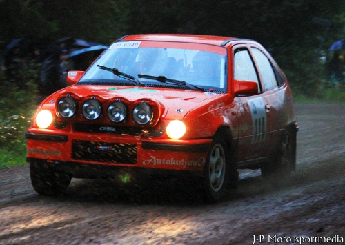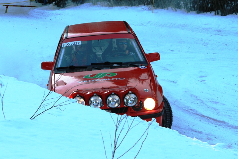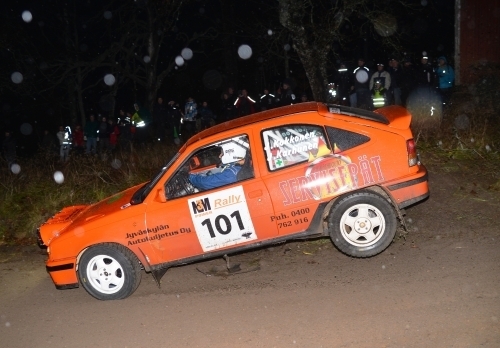 talvikisasta Kemijärvellä. Hieno rallikilpailu ja oikea talvi pohjoisesta löytyikin! Kisa oli Jukan ensimmäinen A-junioreissa syksyn menestysten myötä -sekä 40 ikävuoden täyttymisen juhlistamista samalla. Huoltoon lähti onneksemme taas Lainpellon Teppo, joka osaa tarvittaessa koota Kadetin jaloillaan pimeässä. Nuorta voimaa porukaan toi Serviseppien asentajaharjoittelija J. Hokkanen, joka itse ajaa Sprinttejä Seatilla. Reissu oli kiva ja ralli meni kylmiltään hyvin vaikka Kadetti alkoi viimeisellä ek:lla piiputtamaan ja kypäräpuhelimet pimenivät kuten myös trippimittari. Aikas huimilla ilmalennoilla ja rytkäytyksillä voi olla syy-yhteyttä vaivoihin. Kuskit olivat kuitenkin rautaa alusta loppuun ja luokan kolmas sija saavutettiin!