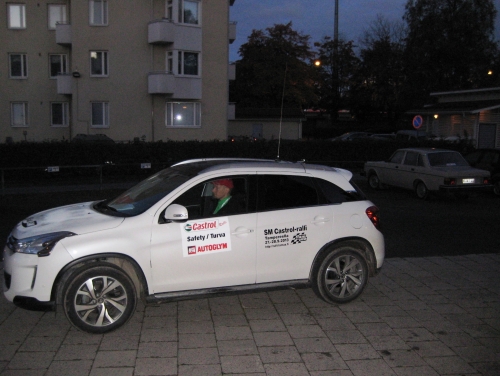 Lauantaina päivänvalossa ja lähes kuivissa oloissa vauhtimme hiukan notkahti suhteessa muihin a-junnuihin. Varsinkin huonokuntoisilla tieosuuksilla nykyaikaisemmasta alustasta olisi varmasti hyötyä. Viimeisen ek:n viimeisessä risteyksessä suistuimme lievästi ja tielle palauttaminen otti puolisen minuuttia -kiitos nostoporukalle!